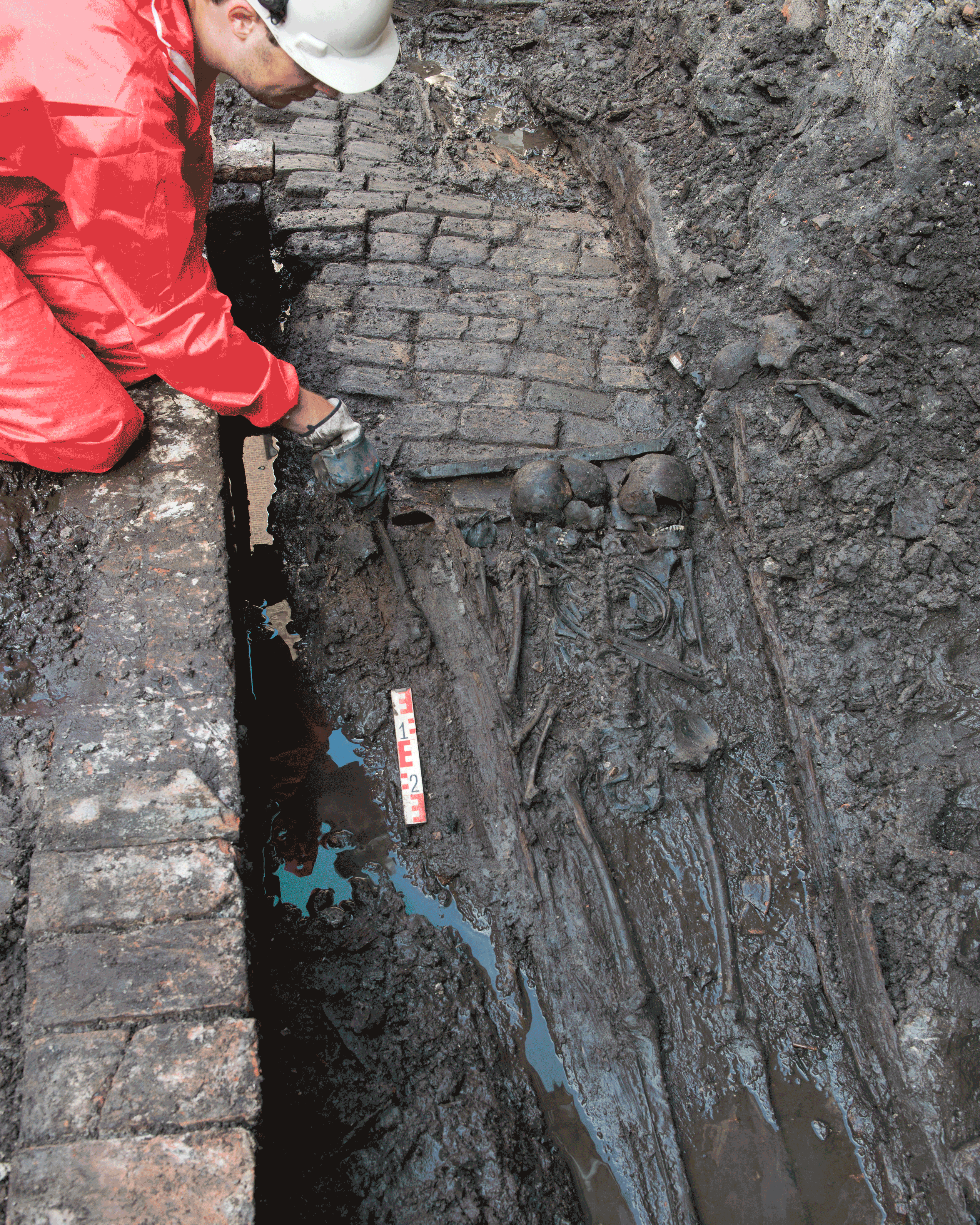 Het bleek te gaan om 13 volwassenen en vijf kinderen, waarvan de jongste 10 jaar oud was. Aan onregelmatigheden in het glazuur van de tanden (glazuurhypoplasieën), porositeit in de oogkassen (cribra orbitalia) en ontstekingen in het botvlies was te zien dat de personen regelmatig gebrek hebben gehad aan goede voeding. Verdere analyse door het Max Planck instituut moet uitwijzen of zij inderdaad ook DNA van de pestbacterie Yersinia Pestis bij zich droegen.