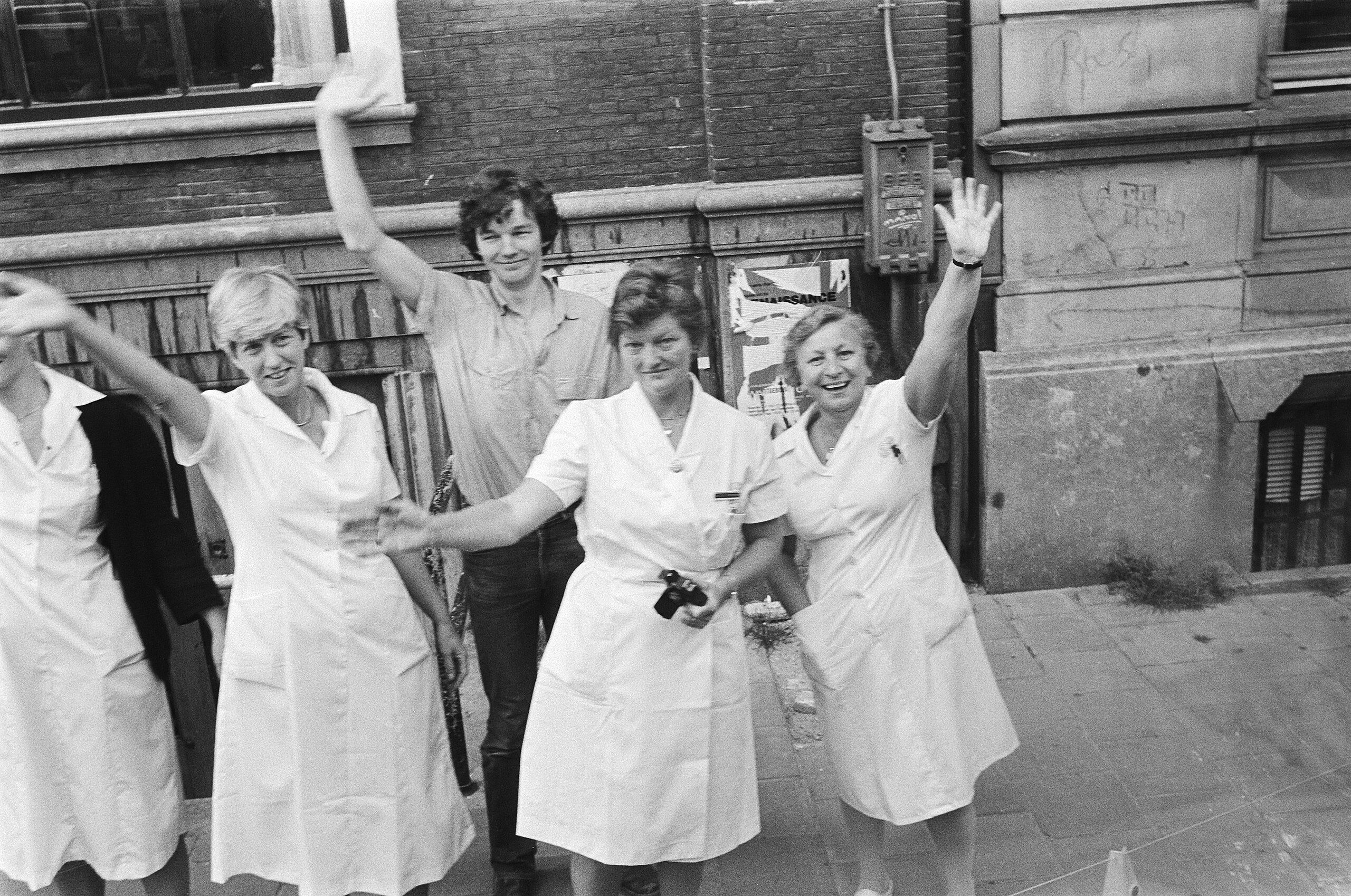 ...en uitgezwaaid door het verplegend personeel.