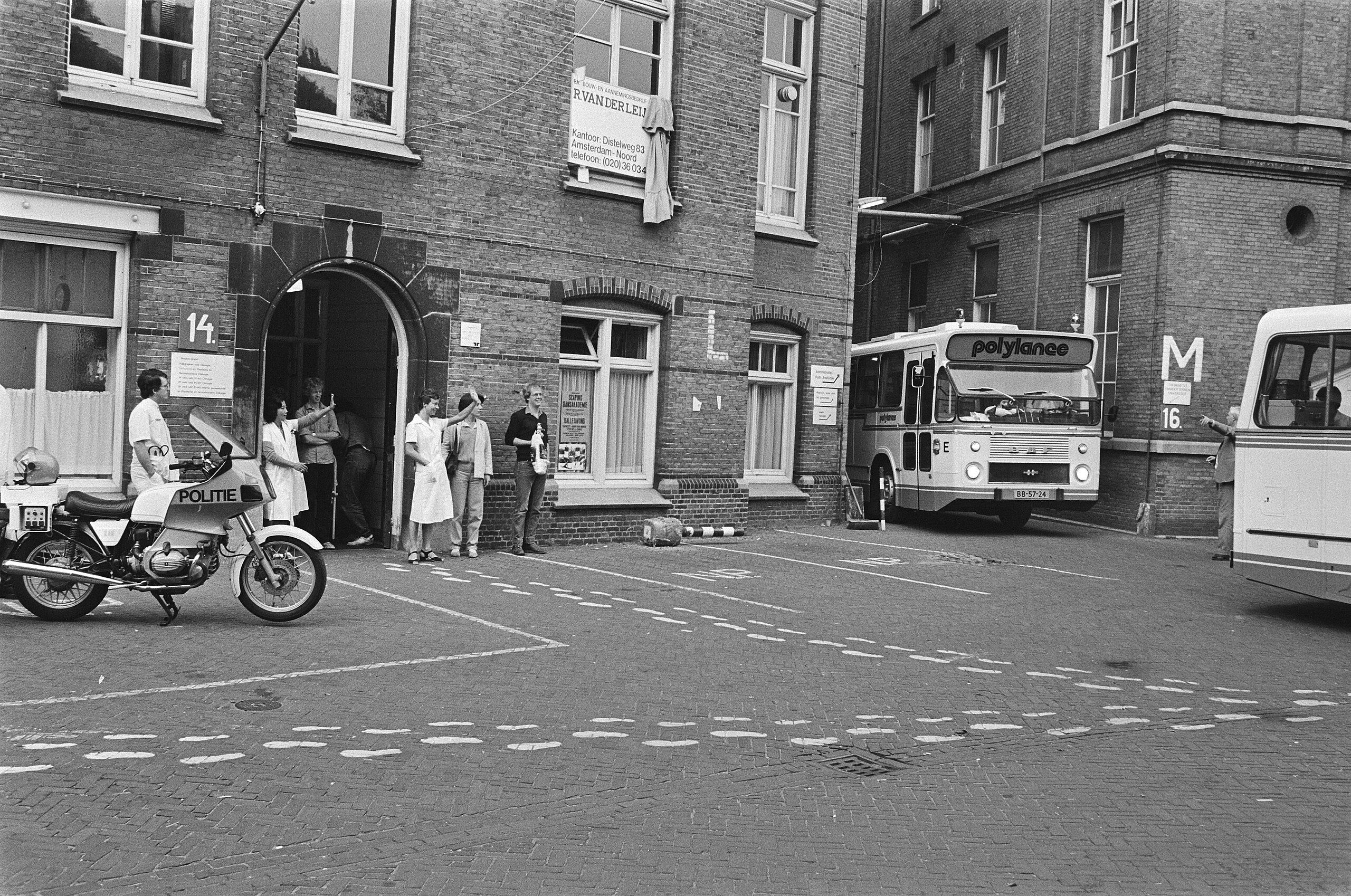 Bij de verhuizing van het ziekenhuis in 1981 werden de patiënten met bussen overgebracht naar het AMC...