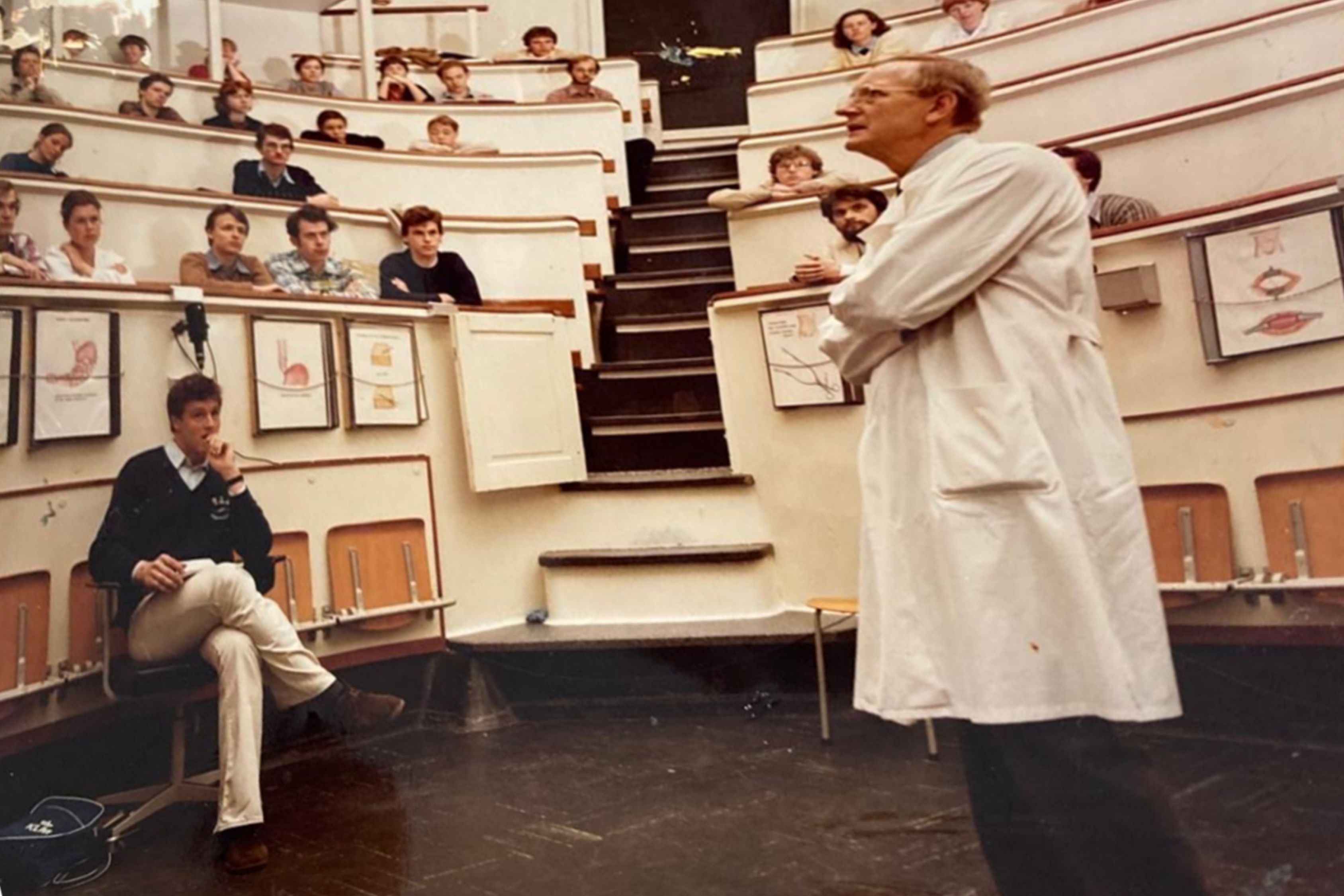 Prof. Dr. W.H. Brummelkamp (1928–2010) was infamous for his first-year lectures in the surgical theater (now called the Surgical Theater). Between 1971 and 1981, students were shown slides of severe injuries and bone fractures, with expert commentary from Brummelkamp. Fainting students became a regular occurrence.