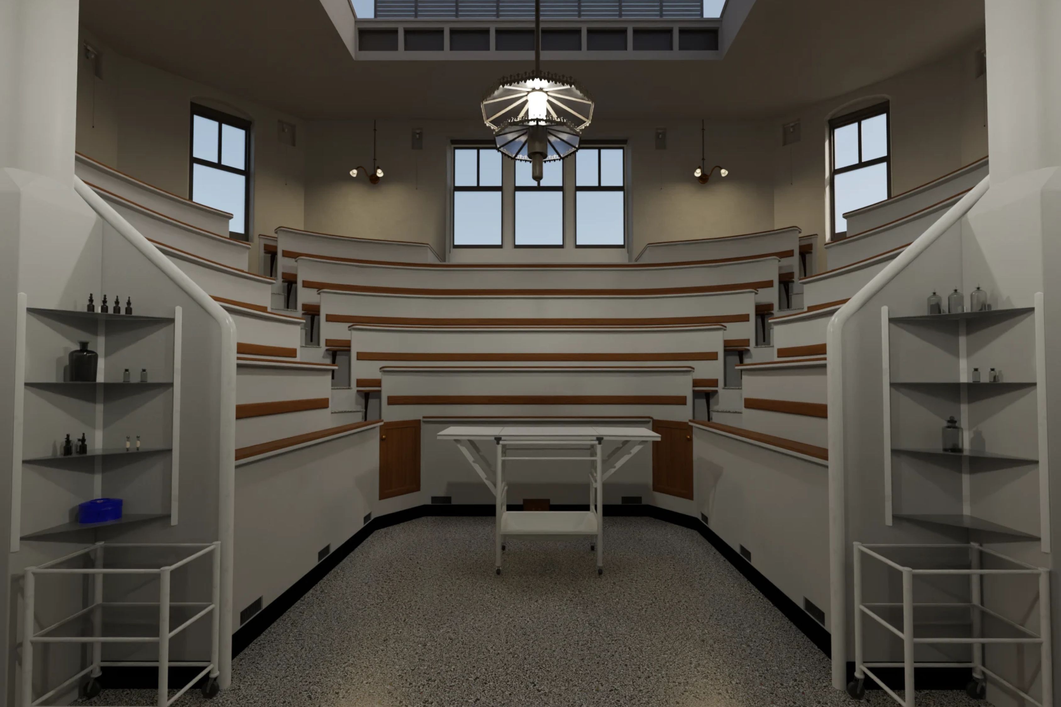 In 1901, Jacob Rotgans opened a modern operating theater with spectator stands in the Second Surgical Clinic. This space later became used for surgery lectures. The spectacularly renovated hall is now called the Surgical Theatre.